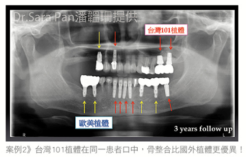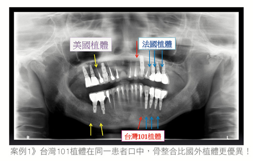 「相信許多民眾甚至牙醫師都可能不知道台灣第一支全製成的Ti-one101植體,不但不輸歐美大廠,甚至在某些臨床案例中更勝一籌!」