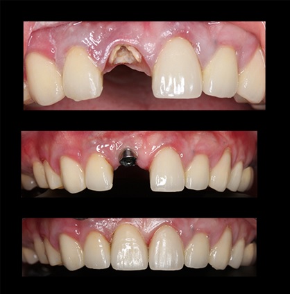 為了保持前牙美觀區的齒槽骨及牙齦高度,做即拔即種植牙手術時,有水雷射的輔助滅菌可以大幅提升成功率,讓患者免去拔牙後等待了三到四個月且多一次手術之苦,如能同時進行二階手術,更可讓患者在一次麻醉中便可做傳統的三個手術(拔牙、植體植入、二階癒合帽放上);二來可幫助醫師植入植體的位置做定位,讓植體植入位置良好,確保前牙美觀區的軟硬組織不會因植體角度不良而被吸收,使牙齦弧度及高度適中,讓人看不出哪一顆是植牙,這是由水雷射輔助而做「即拔即種」的又好處。